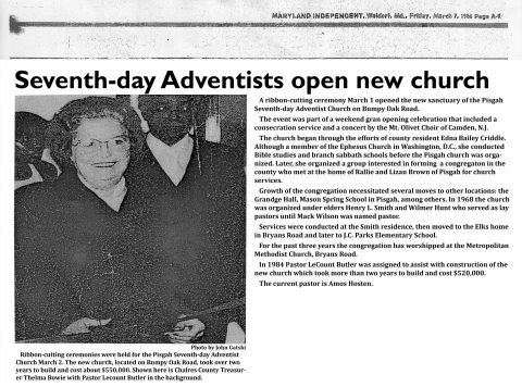 Take a look at this article from the Charles County, Maryland records about how God moved on our behalf when we officially founded Pisgah Church.